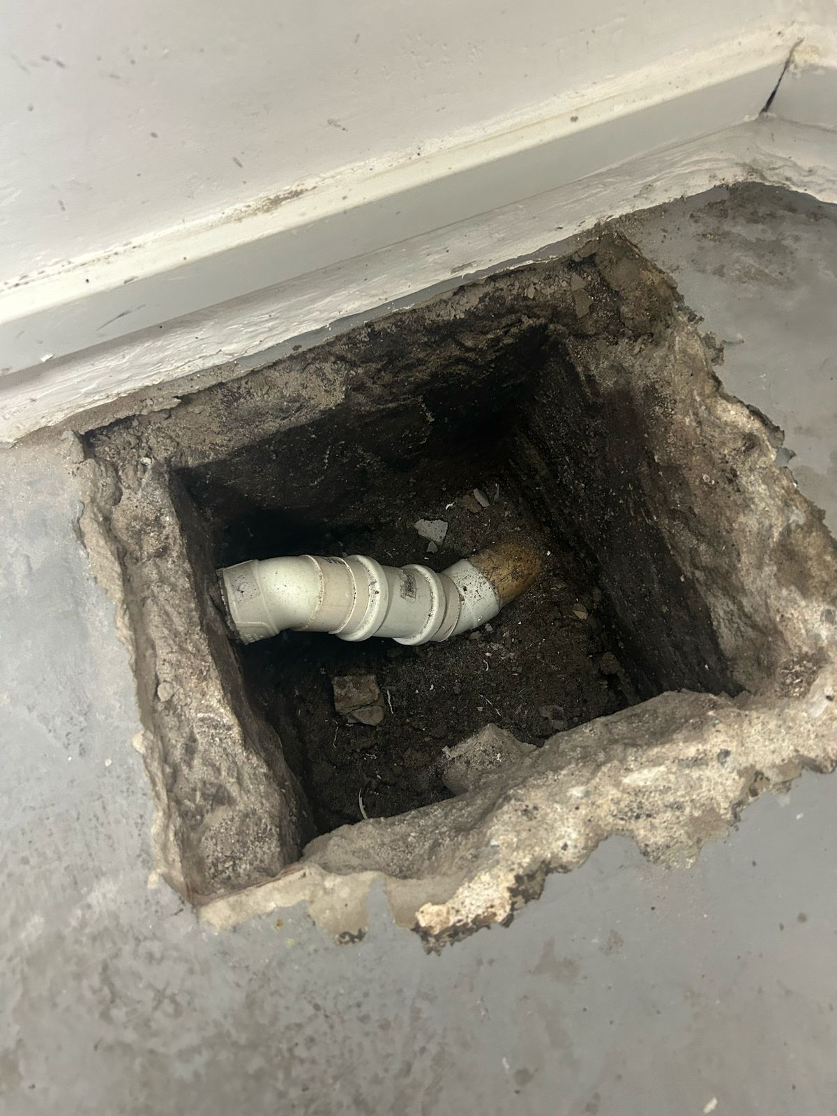 Identificação de falha em trecho da tubulação hidráulica, com sinais de vazamento e comprometimento da vedação